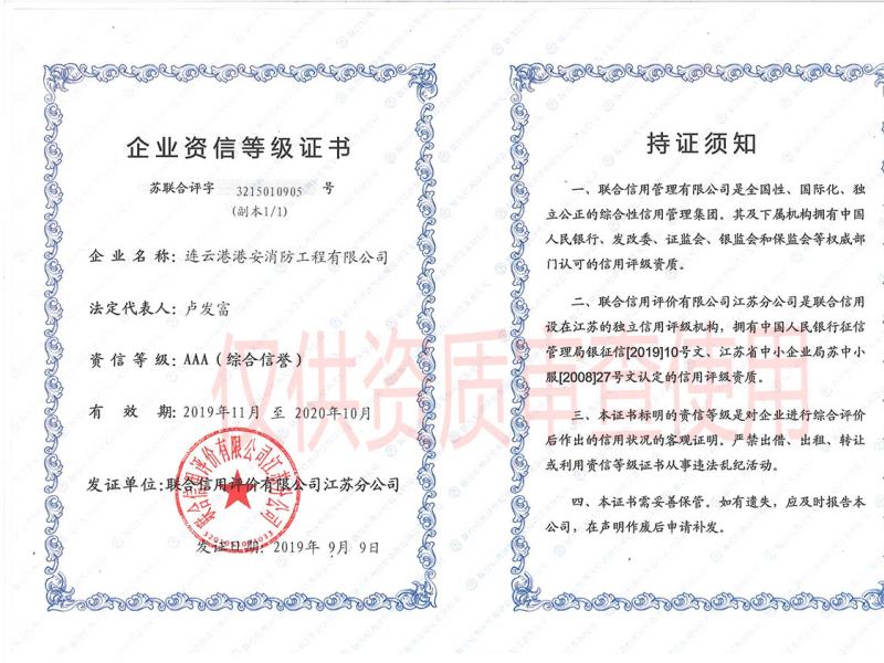 企業(yè)“AAA”資信等級(jí)證書