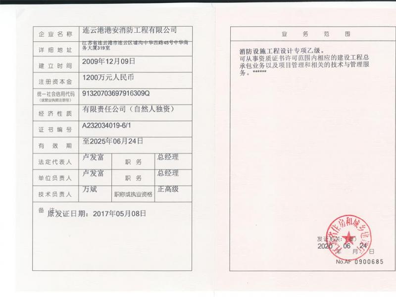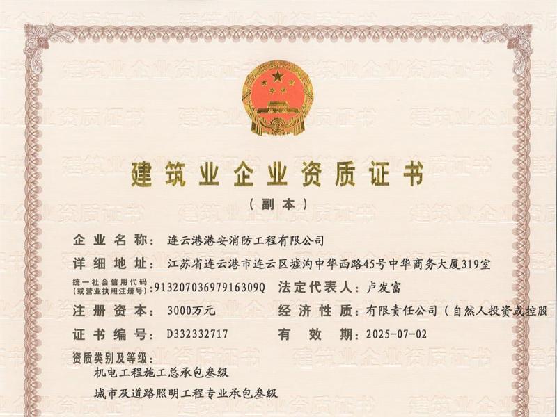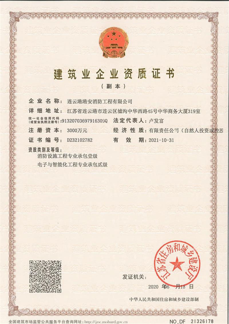 資質(zhì)證書-消防壹級(jí)、智