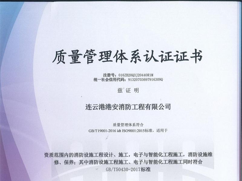 質(zhì)量管理體系認(rèn)證證書