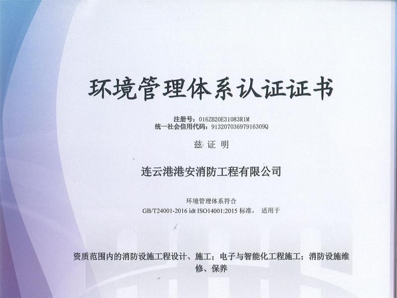 環(huán)境管理體系認(rèn)證證書.